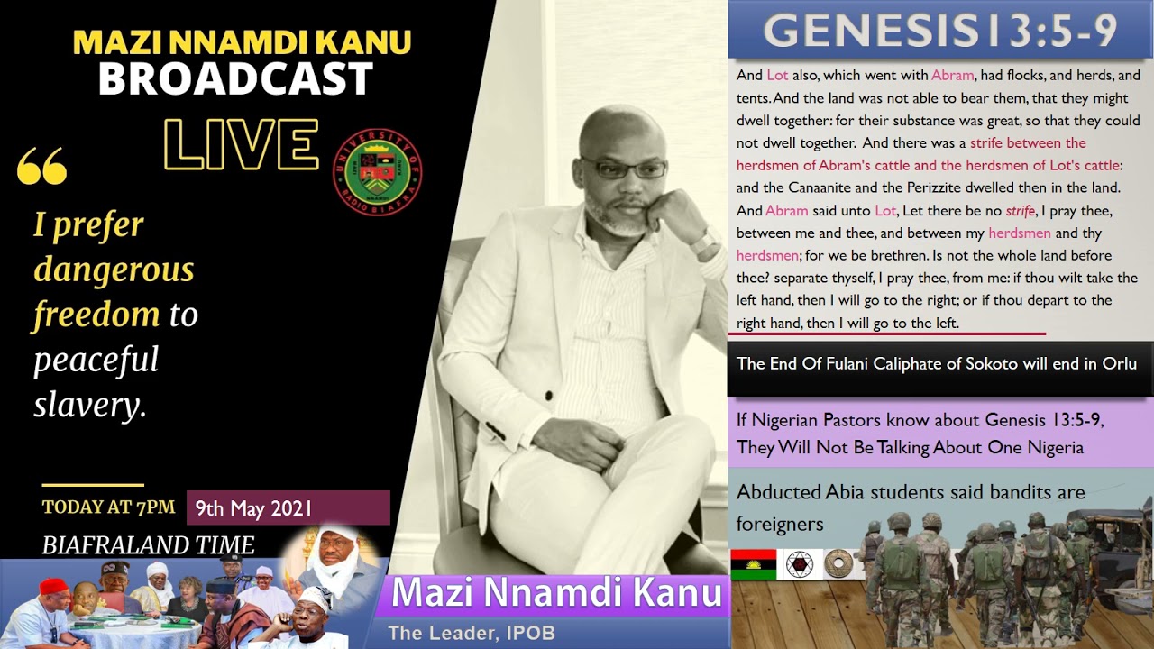 Mazi Nnamdi Kanu S Live Broadcast If You Want To Know Why Go To Genesis 13 5 9 Youtube